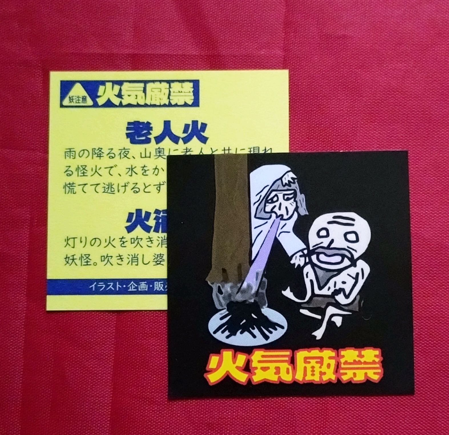 妖注意しりーず 火気厳禁(火消し婆&老人火) サイズ 48×48mm ※画像と実際の商品の色味が異なる場合がございます。予めご了承ください。